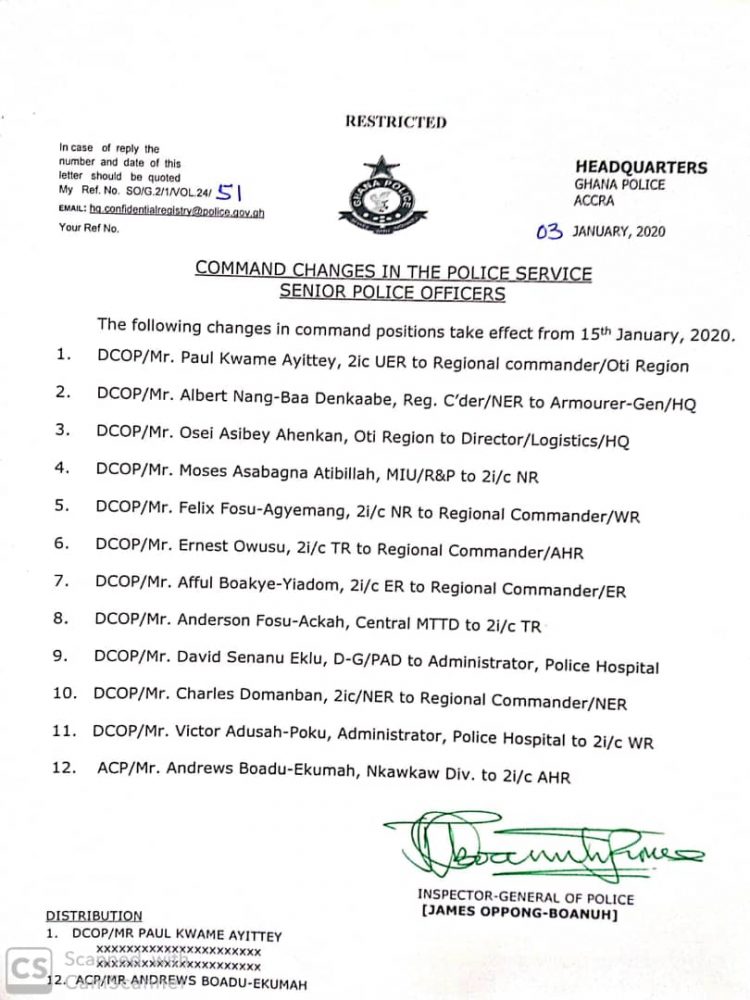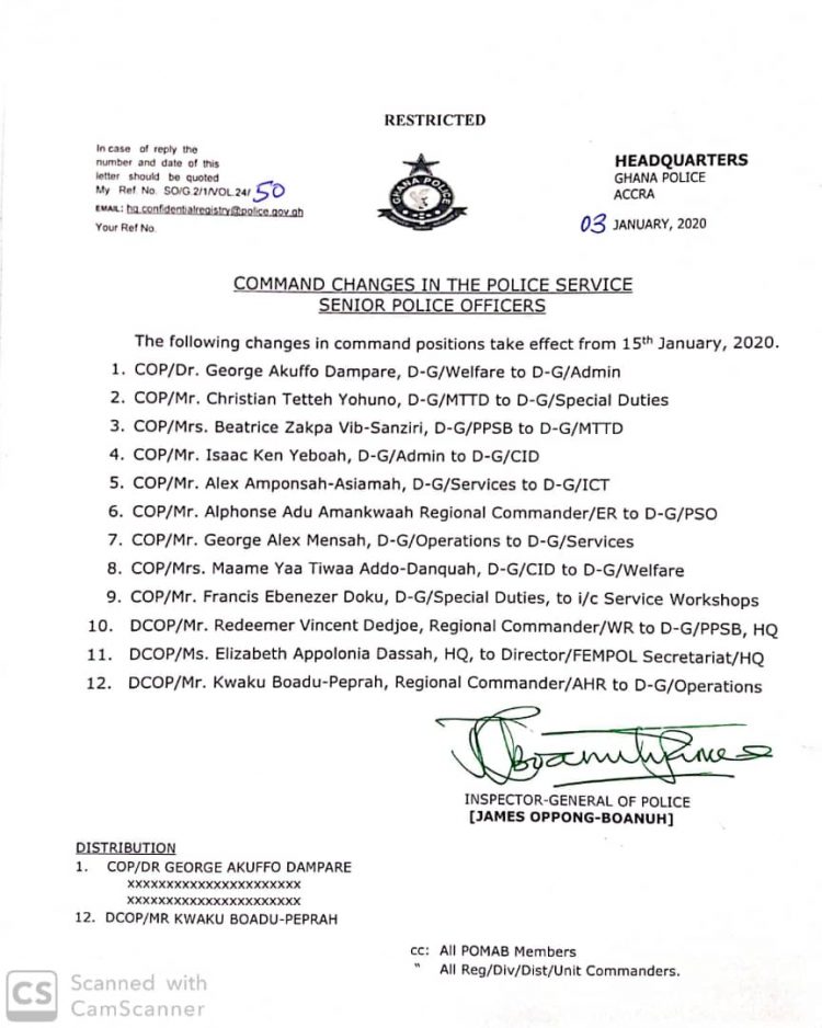 This is the first reshuffle within the police service since James Oppong-Boanuh took over as IGP in 2019.