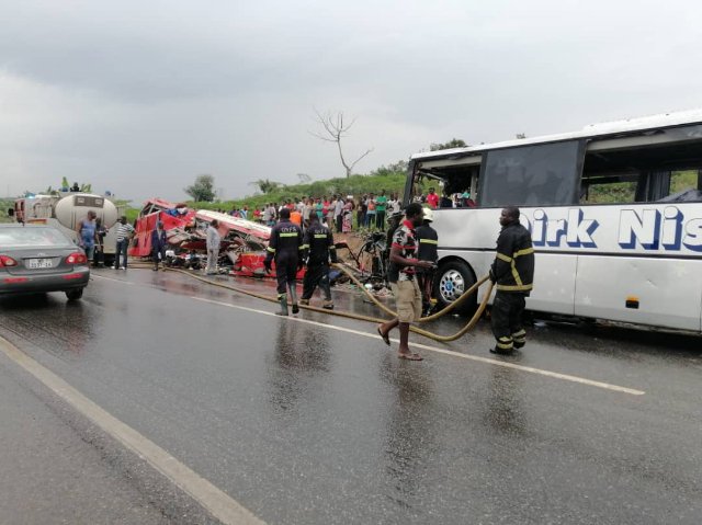The accident involved two Yutong buses which had a head-on collision on the Dompoase Junction near Komenda Junction.