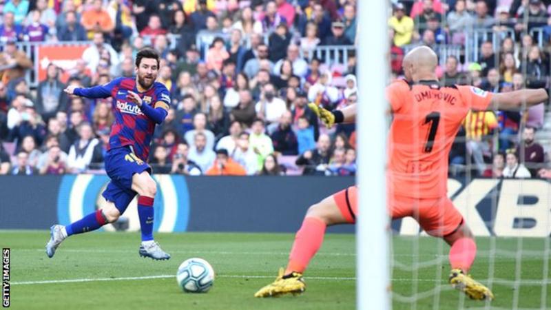 After a slow start, Messi scored a sensational opener when he rounded off a brilliant solo run by chipping the ball over Eibar’s Marko Dmitrovic after 14 minutes.