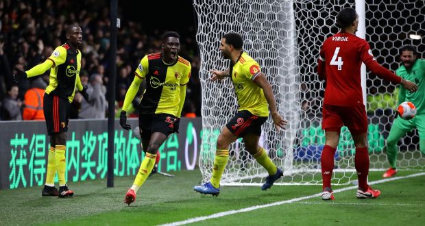 Ismaila Sarr scored twice while captain Troy Deeney added a third in a sparkling second-half display from the hosts as Liverpool’s run of victories was brought to a shuddering halt.