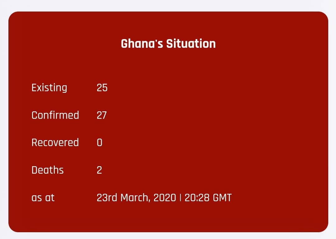 Cases of the novel coronavirus in Ghana have hit 27 while the death toll has hit 2.