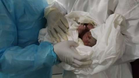 The baby was born prematurely weighing 2.1kg (4.6lb) and is in the neonatal unit. It is not clear if the baby is infected as her tests are still being processed, but she is being fed with breast milk from her mother.