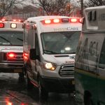 A patient from France who is seriously ill with the coronavirus is transported from an ambulance plane after landing at Dresden International Airport in Dresden, Germany, Saturday, April 4, 2020. For most people, the new coronavirus causes only mild or moderate symptoms, such as fever and cough. For some, especially older adults and people with existing health problems, it can cause more severe illness, including pneumonia.(Robert Michael/dpa via AP)