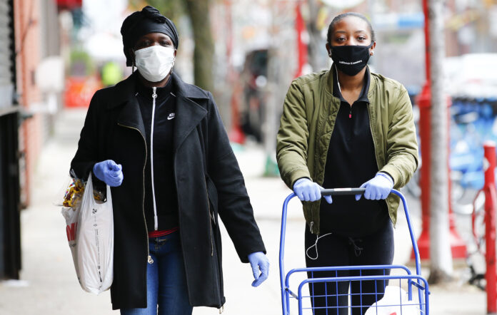 Two women walk along South Street wearing masks on Monday, March 30, 2020. Experts are increasingly encouraging American to wear masks while out in public.