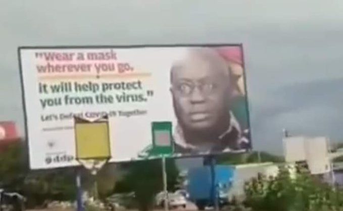 “We appreciate all who seek to help the government communicate at this time. But please do well to engage with the government on imaging and messaging. This billboard of the President without a mask is not from the government. Note that at his last public appearance the President wore his masks till his speech. We have asked city authorities to pull this down.” he said in a tweet.