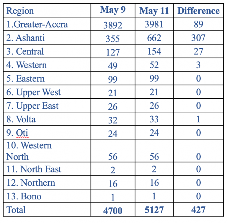 The other regions with new cases were the Central, Western and Volta regions with 27, three and one cases respectively.