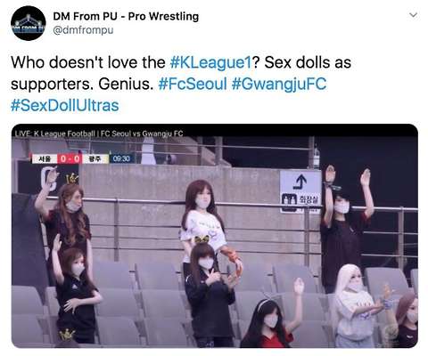 Meanwhile, FC Seoul has a pretty unique idea by using life-sized female dolls in the stands. They’re even applying social distancing rules by sitting two metres apart.