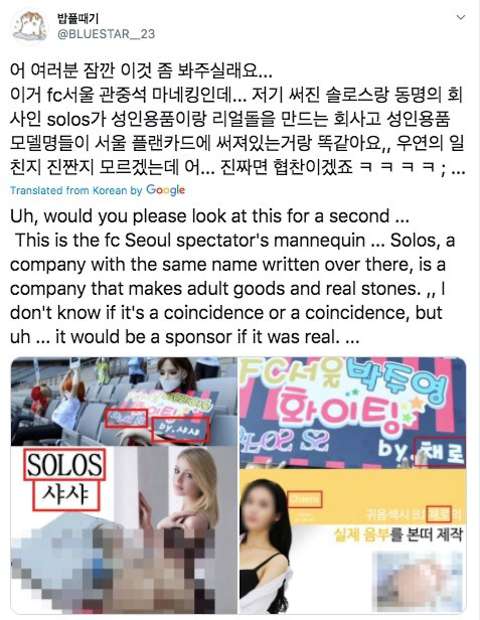 Many fans believe that an adult shop has supplied these sex dolls with some of them holding sponsorship signs for the shop in question.