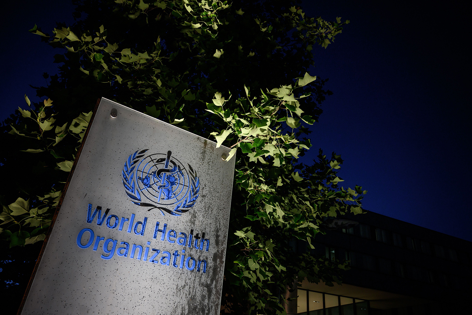 A photo taken in the late hours of May 29, 2020 shows a sign of the World Health Organization (WHO) at their headquarters in Geneva amid the COVID-19 outbreak, caused by the novel coronavirus. - President Donald Trump said May 29, 2020, he was breaking off US ties with the World Health Organization, which he says failed to do enough to combat the initial spread of the novel coronavirus. (Photo by Fabrice COFFRINI / AFP) (Photo by FABRICE COFFRINI/AFP via Getty Images)