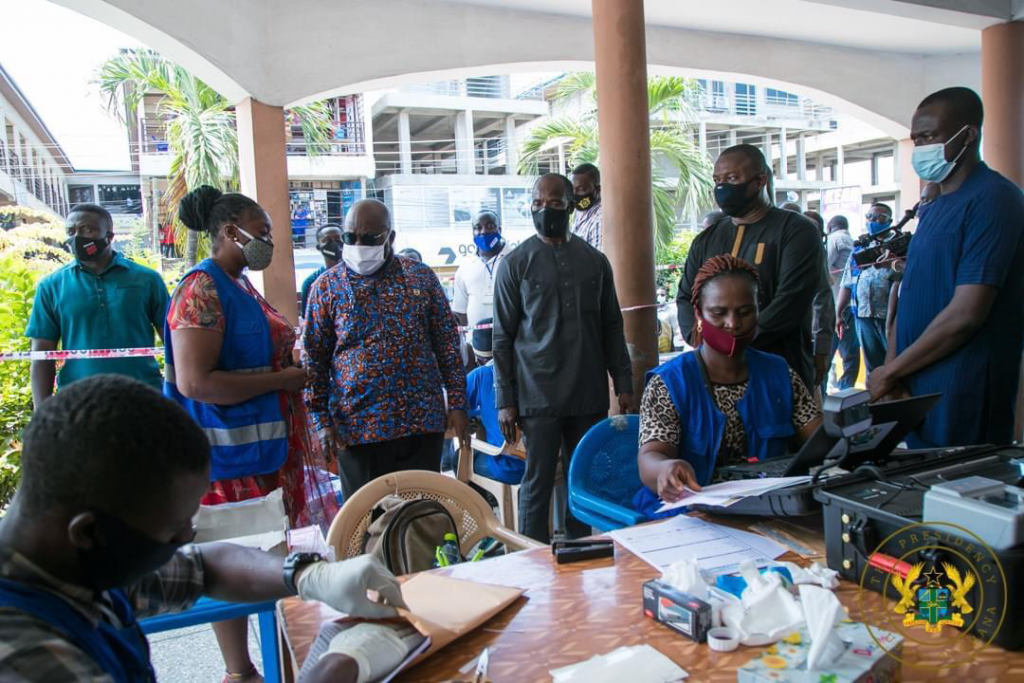 The President, Nana Addo Dankwa Akufo-Addo, on Thursday, 2nd July 2020, paid unannounced visits to five voter registration centres in the Greater Accra Region.
