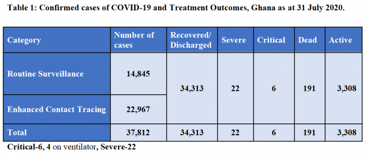 Ghana has recorded 798 new cases of COVID-19. This has pushed the national cumulative tally to 37,812.