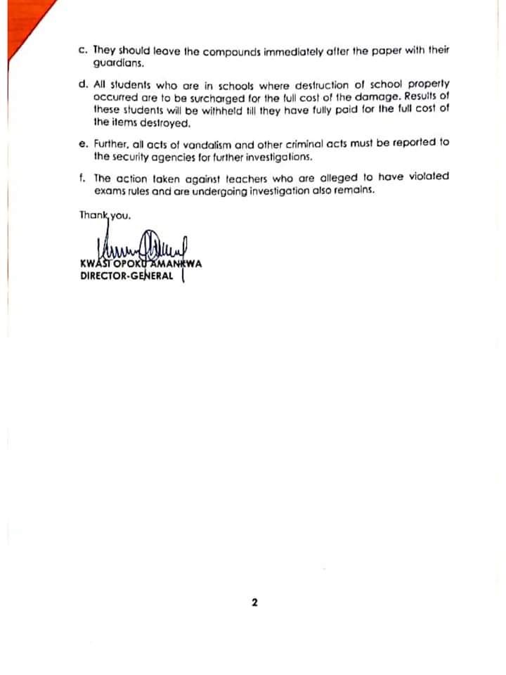 Additionally, three teachers have also been interdicted and barred from invigilating pending conclusion of the probe to ascertain their culpability for their roles in the alleged activities as “they are further being referred to the security agencies for further investigation.”