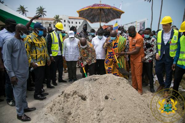 The President of the Republic, Nana Addo Dankwa Akufo-Addo, on Thursday, 20th August 2020, cut the sod for the commencement of construction of the Elmina Fishing Port Project.