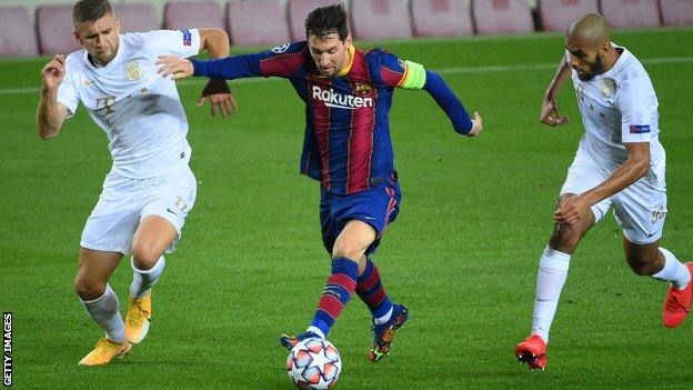 Lionel Messi scored in a joint record 16th Champions League season and 17-year-old Pedri netted his first senior goal as Barcelona beat Ferencvaros.
