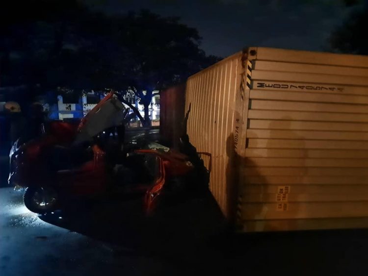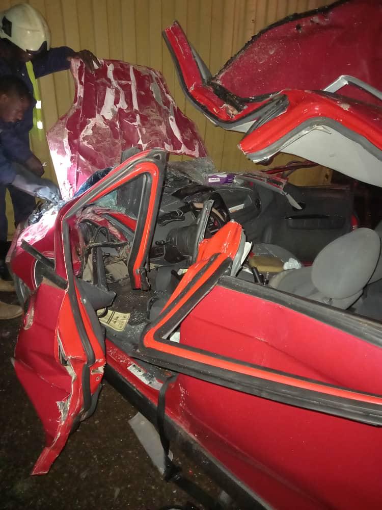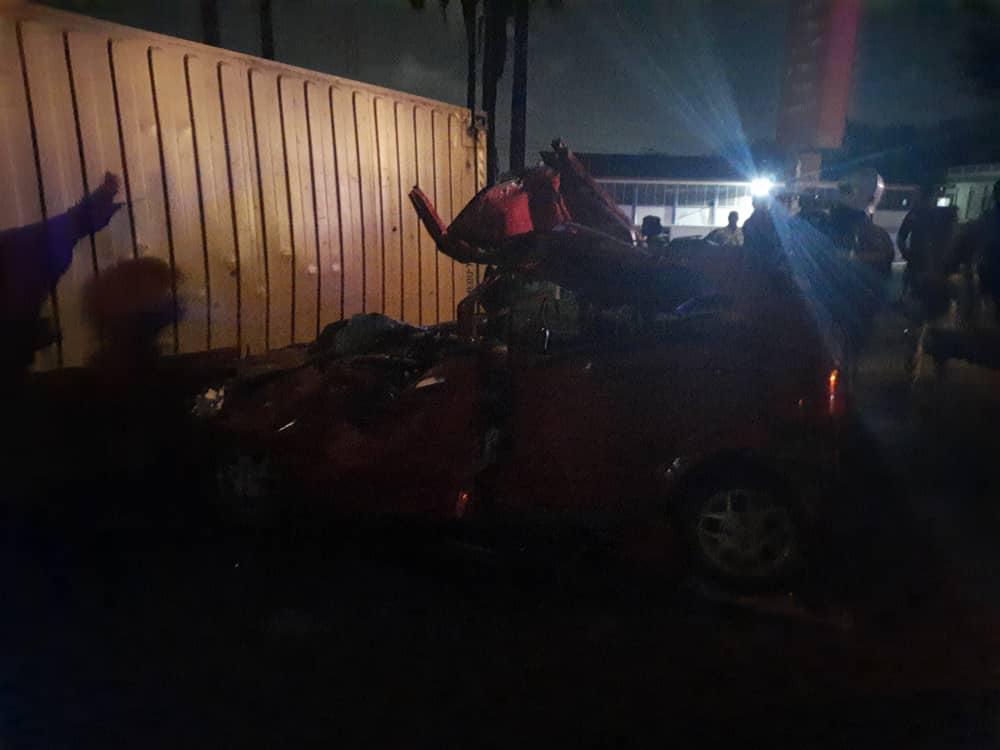 “On reaching the Vodafone intersection, a Daf articulator with registration number GT 5953 – 20 also from the opposite direction, driven by Adu Emmanuel Kweku, aged 32 with a 40 footer container loaded with cocoa veered off his lane and climbed the median to the lane of the Matiz. The container detached from the truck and fell on the Matiz crushing it. Those in the Matiz were trapped in the car but with the help of Fire Service and Road safety recovery truck, they were removed and bodies deposited at Effia Nkwanta Government hospital morgue pending autopsy,” he said.