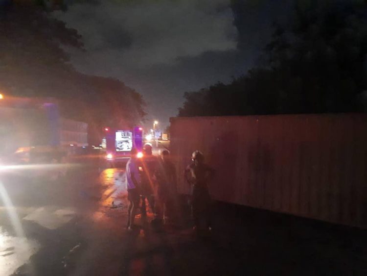 The truck was carrying cocoa and was heading towards the Takoradi Habour for export but the container came off the truck which fell on the two occupants in the Daewoo Matiz on the highway.