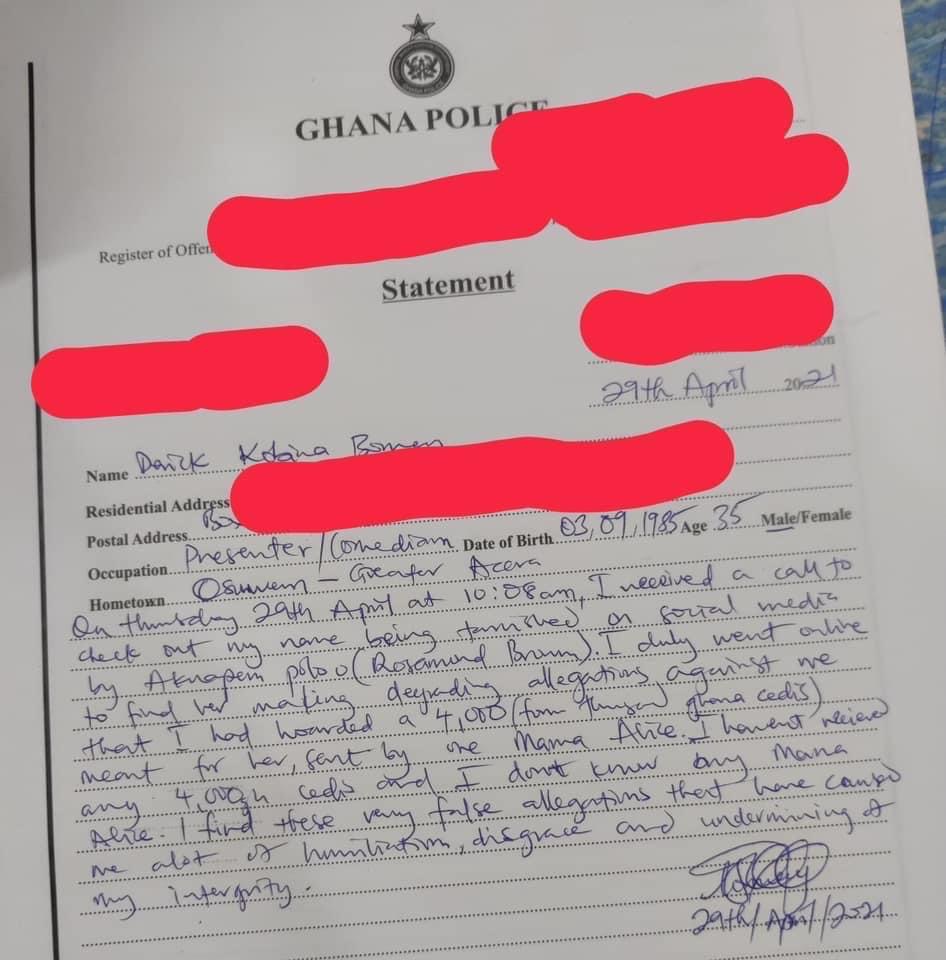 Comedian DKB has reported actress Rosemond Alade Brown to the police.