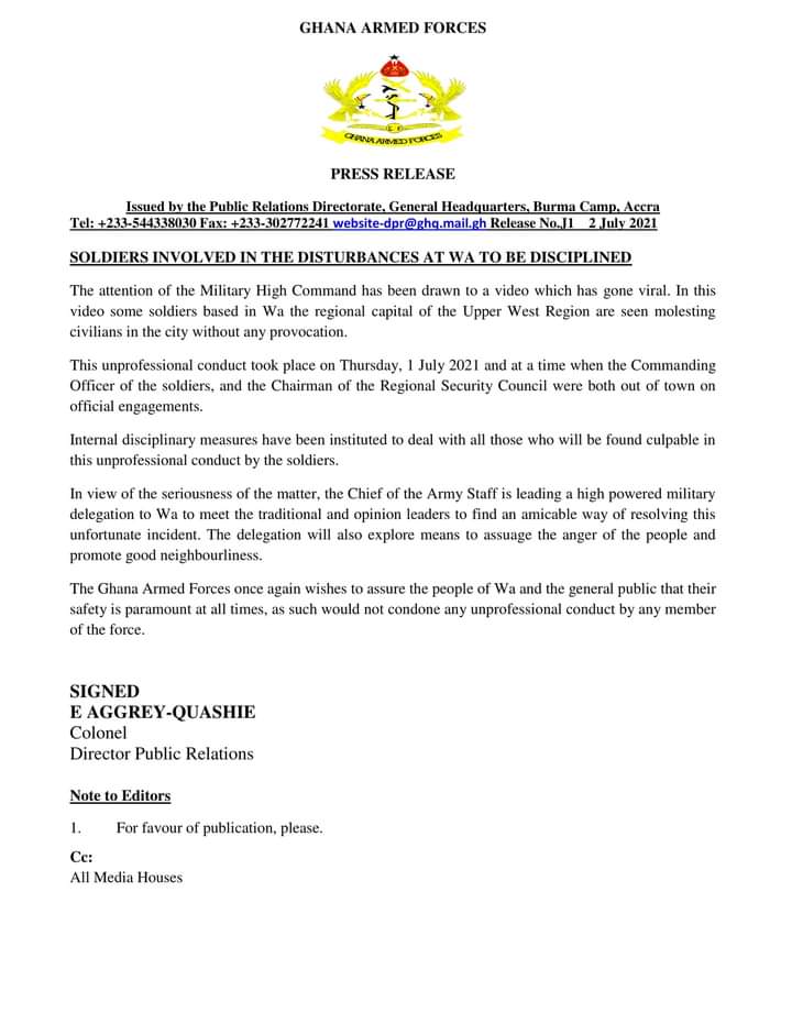 The Ghana Armed Force (GAF), says it will deal with its personnel seen in a viral video brutalizing some residents of Wa, the Upper West Regional capital on Thursday, July 1, 2021.