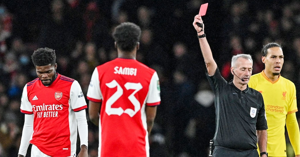 Thomas Partey was sent off for Arsenal in their Carabao Cup defeat to Liverpool 15 minutes after coming on following his return from the Africa Cup of Nations in Cameroon.