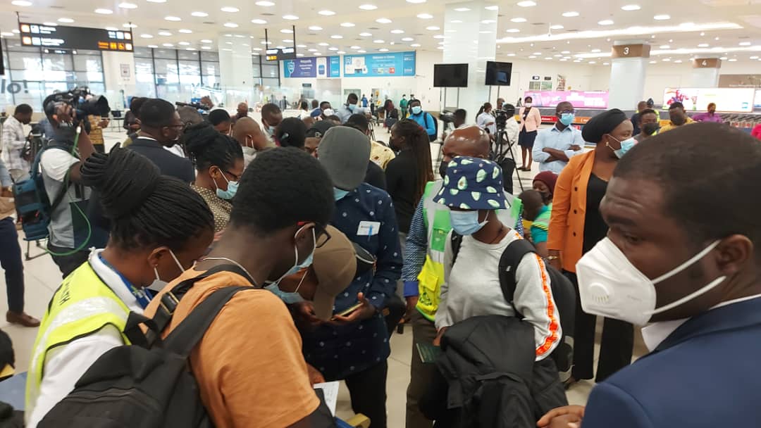 The first batch of Ghanaian nationals who have been evacuated amid the unrest in Ukraine has touched down at the Kotoka International Airport.