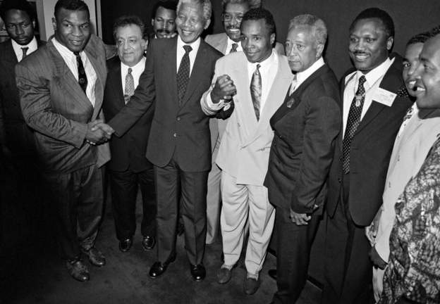Mandela, who became South Africa’s first democratically elected president in 1994 after spending 27 years in jail for fighting against apartheid, was a boxing fan.