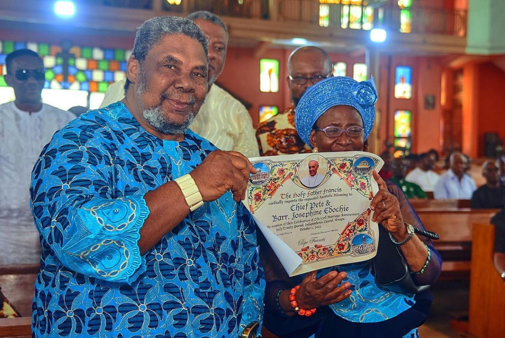 Pete Edochie took to his social media handles to share pictures of the day while celebrating his wife of five decades.