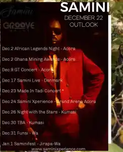 • December 24, 2022 – Samini Xperience Concert (Grand Arena) – Accra