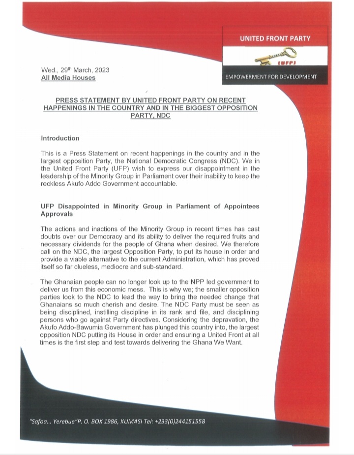 The UFP Authorities in a statement called on the vetting committee of the NDC at the Constituency level to disqualify their General Secretary on grounds of trust.