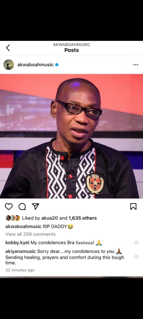 His passing was announced by his son Akwaboah Jnr in an Instagram post.