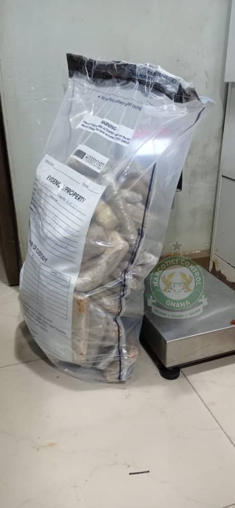 The intercepted consignment which was destined for the U.K were detected by officers of the Commission at the scanning room as part of their routine duties at the Kotoka International Airport Cargo Terminal.
