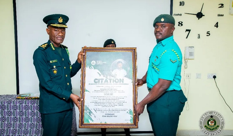 An official statement signed by Chief Superintendent Amoako Atta, the Head of Public Affairs, explained that the Comptroller-General decorated the brave officer on behalf of the National Immigration Management Committee.
