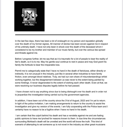 “I would like to clearly state that I have never fought or attacked Mohbad. For the avoidance of doubt, I have never instructed anyone, friend, known associates or fans to attack, bully or harass Mohbad. With regard to the talent on the label, none of our artists ever fought or mistreated Mohbad.