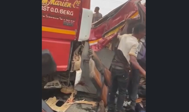 According to eyewitnesses, the truck run over the mini bus [trotro] from behind, killing the passengers in the bus.