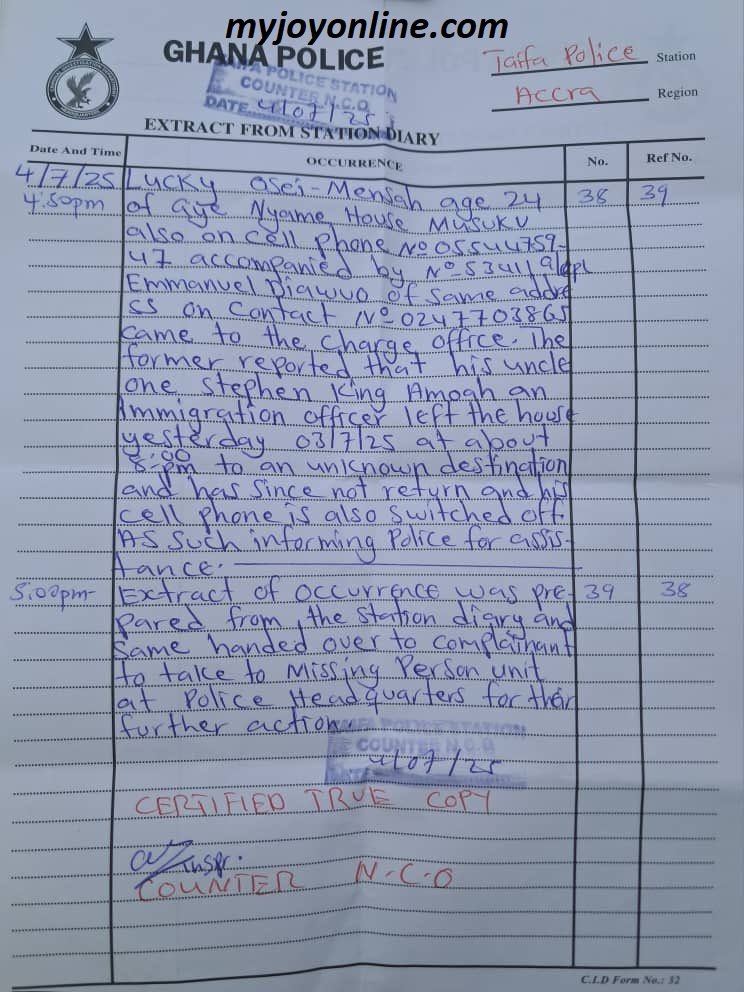 The frustrated family of Steffen King Amoah, also known as Nana Kofi, lodged a complaint with the Taifa Police on July 4, 2025, at about 4:30 p.m., after several attempts to reach the deceased on his cell phone proved futile.