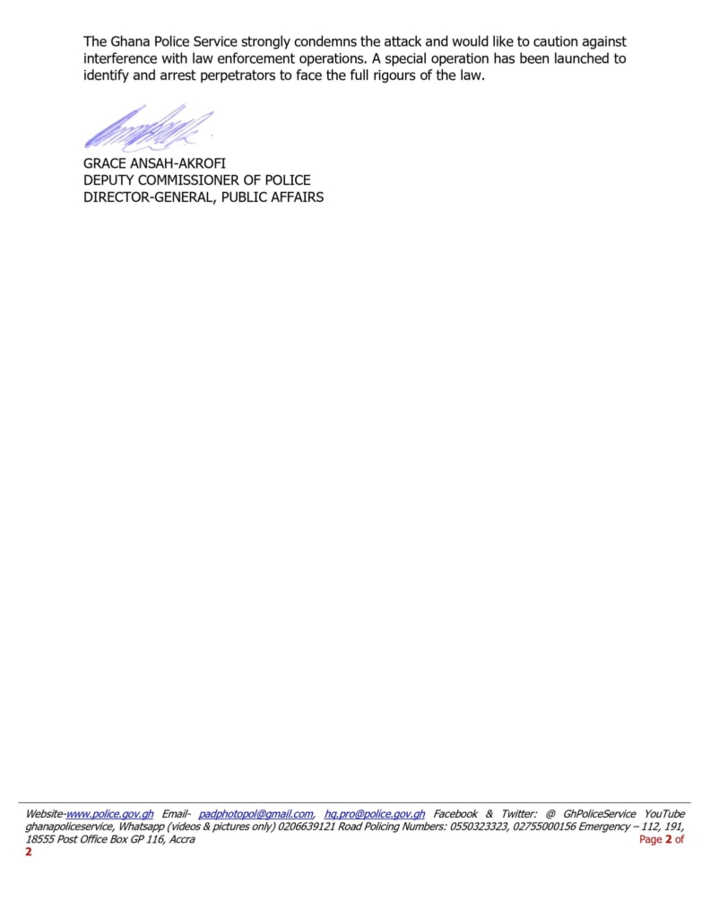 “The Ghana Police Service strongly condemns the attack and would like to caution against interference with law enforcement operations. A special operation has been launched to identify and arrested perpetrators to face the full rigours of the law,” it added.